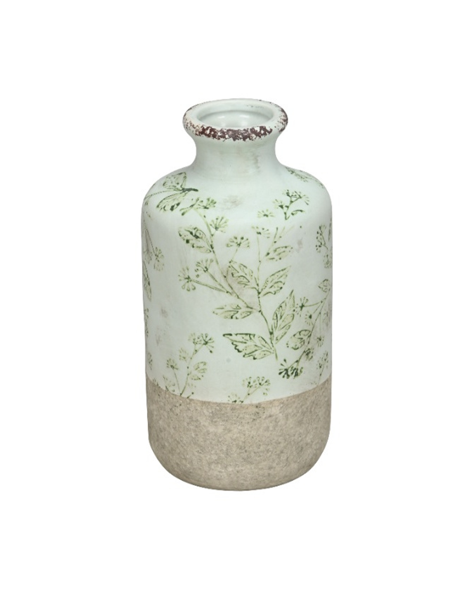 Olive Green Leaf Pattern Bottle Vase